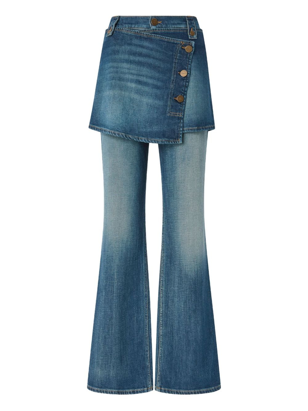 FLARED JEANS WITH REMOVABLE MINISKIRT