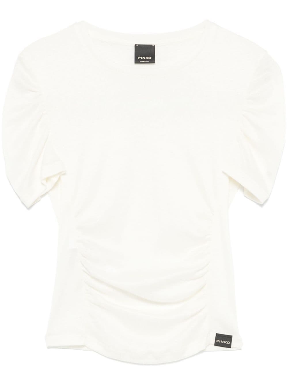 ruched-detailing T-shirt Highlights - White - Cotton - Semi-sheer construction - Ruched detailing - Logo patch to the front - Round neck - Short sleeves - Straight hem Made in Italy Composition Cotton 100% SIZE & FIT Model measurements Height 5 ft 9 in(1.75 m) Bust/Chest 30.7 in(78 cm) Hips 35.03 in(89 cm) Waist 23.62 in(60 cm) FittingInformation Designed for a slim fit that sits just away from the body offering a close yet comfortable fit Made from a lightweight non-stretch fabric, this piece offers minimal elasticity when worn