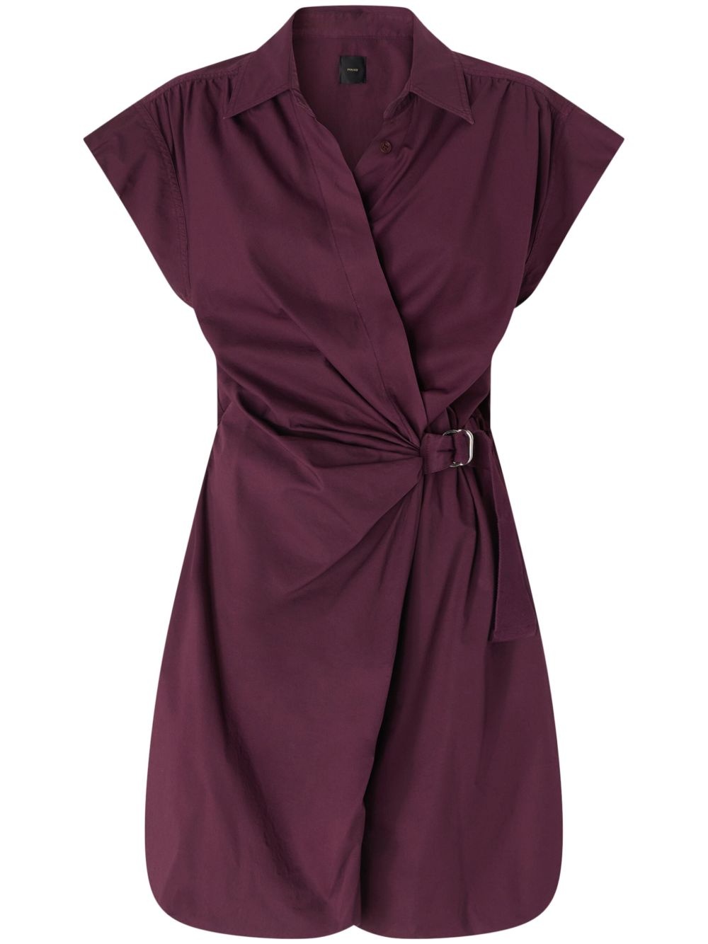 ruched mini dress Highlights - Burgundy - Adjustable strap to the side - Concealed front fastening - Classic collar - Short sleeves Imported Composition Cotton 97%, Elastane 3%