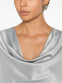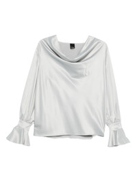 ruffled blouse Highlights - Silver-tone - Cowl neck - Long sleeves - Ruffled cuffs Imported Composition Polyester 100% SIZE & FIT Model measurements Height 5 ft 9 in(1.76 m) Bust/Chest 31.88 in(81 cm) Hips 35.43 in(90 cm) Waist 24.8 in(63 cm) Washing instructions Read Manufacturer Guidelines