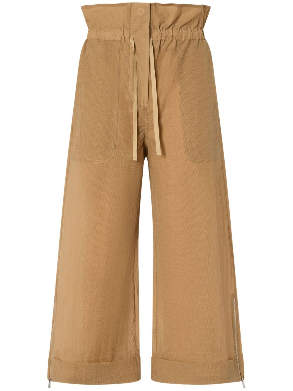 ruffled-waist trousers Highlights - Ochre brown - Drawstring fastening waist - Ruffled detailing - Wide leg - Turn-up hem Imported Composition Polyamide 100% Washing instructions Read Manufacturer Guidelines