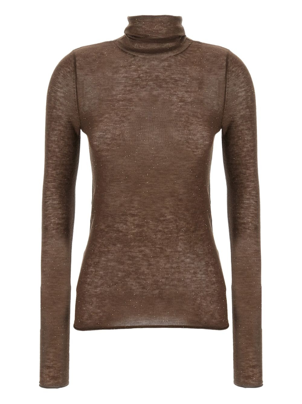 sequin-embellished high-neck top Highlights - Brown - Sequin embellishment - High neck - Long sleeves - Wool - Back logo patch Imported Composition Wool 98%, Polyester 2% Washing instructions Read Manufacturer Guidelines