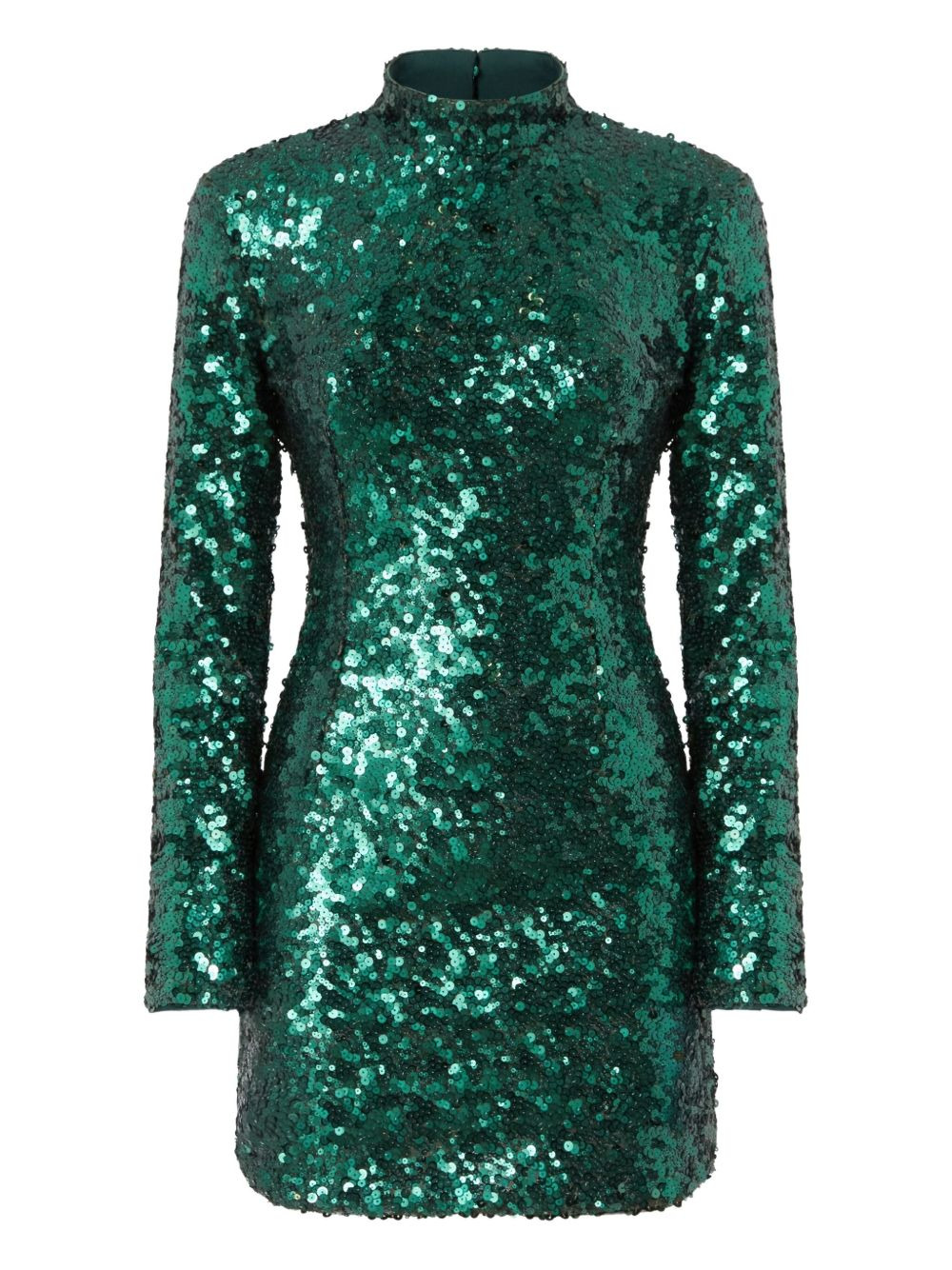 sequin-embellished mini dress Highlights - Green - Sequin embellishment - Long sleeves - Open back Imported Composition Polyester 100% Washing instructions Do Not Wash/Do Not Dry Clean