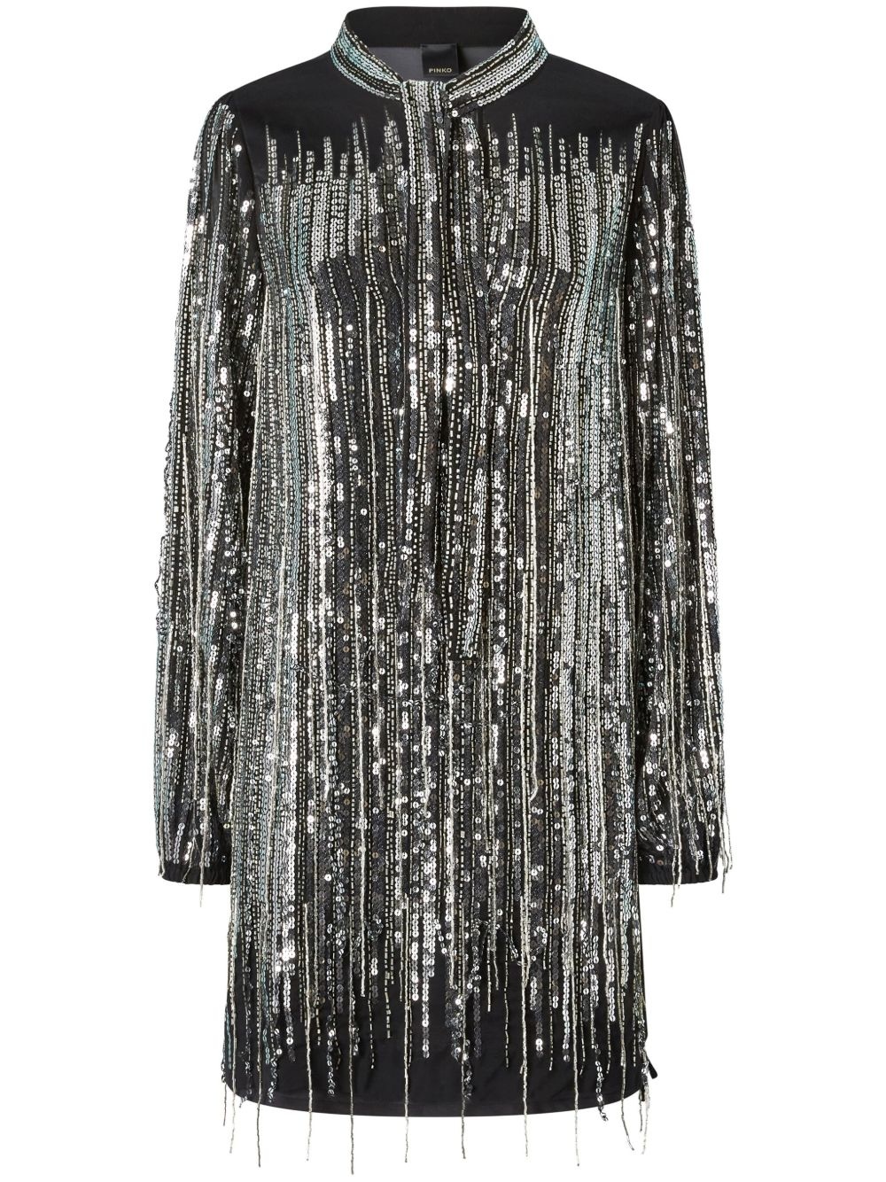 sequined mini dress Highlights - Black - Band collar - Long sleeves - Shift style - Straight hem Imported Composition Polyester 100% Washing instructions Hand Wash