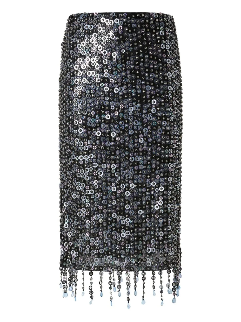 sequinned midi skirt Highlights - Anthracite grey - Concealed side fastening - Fringe detailing - Bead embellishment - Full lining Imported Composition Polyester 100% Washing instructions Hand Wash