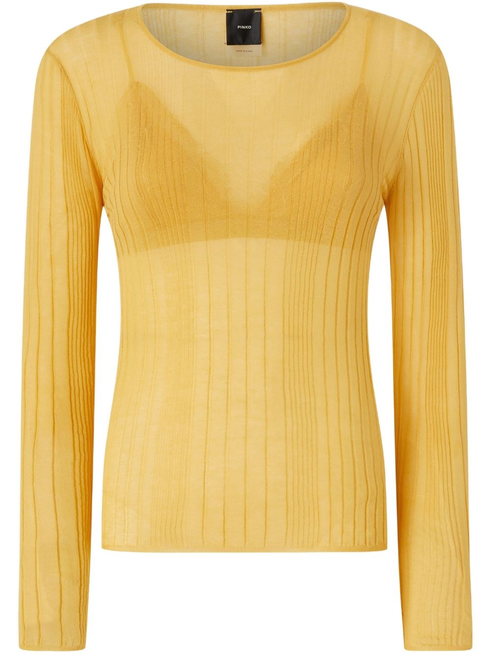 sheer ribbed top Highlights - Jasmine yellow - Semi-sheer construction - Round neck - Long sleeves - Straight hem Imported Composition Cotton 82%, Polyamide 18%
