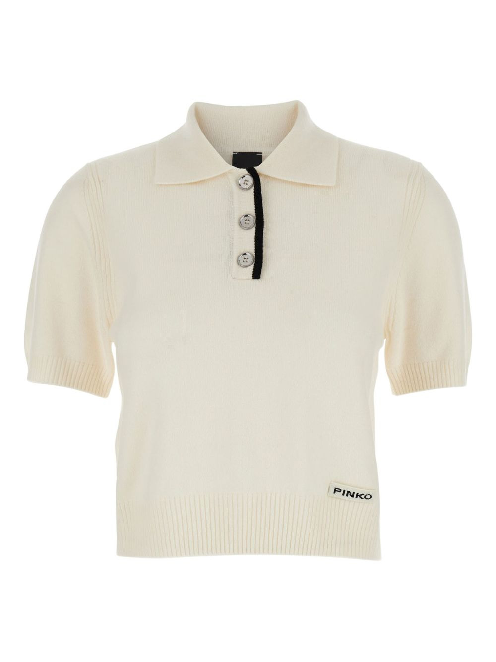short-sleeve polo shirt Highlights - Off-white - Short sleeves - Polo collar - Front button placket - Black placket trim Imported Composition Fabric 100% Washing instructions Read Manufacturer Guidelines