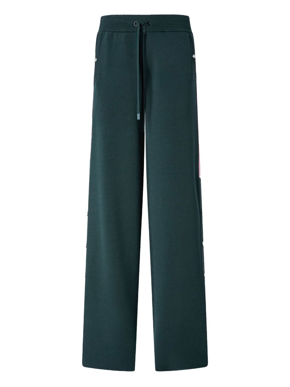 side-stripe trousers Highlights - Dark green - Side stripes - Drawstring waist - Elasticated waistband Imported Composition Viscose 82%, Nylon 18% Washing instructions Read Manufacturer Guidelines