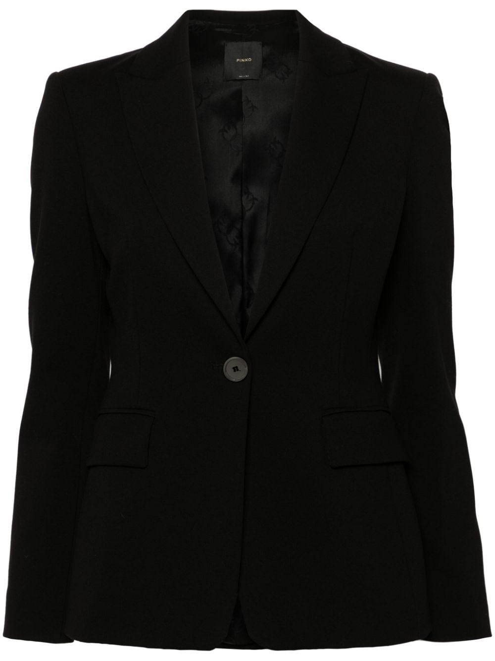 Signum blazer Highlights - Black - Peak lapels - Shoulder pads - Long sleeves - Buttoned cuffs - Dart detailing - Two side flap pockets - Logo-jacquard lining - Straight hem - Front button fastening Made in Italy Composition Outer: Viscose 67%, Nylon 28%, Elastane 5% Lining: Acetate 70%, Polyester 30% SIZE & FIT Model measurements Height 5 ft 10 in(1.77 m) Bust/Chest 32.28 in(82 cm) Hips 35.03 in(89 cm) Waist 25.19 in(64 cm) FittingInformation Designed for a slim fit that sits just away from the body offering a close yet comfortable fit The internal shoulder pads offer a structured shape Made from a midweight fabric This piece fits true to size – take your usual size