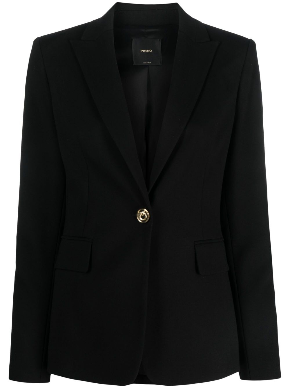 single-breasted button blazer Highlights - Black - Stretch-design - Classic lapels - Front button fastening - Long sleeves - Two front flap pockets Made in Italy Composition Outer: Viscose 67%, Polyamide 28%, Spandex/Elastane 5% Lining: Acetate 68%, Polyester 32% SIZE & FIT Model measurements Height 5 ft 10 in(1.77 m) Bust/Chest 32.67 in(83 cm) Hips 35.43 in(90 cm) Waist 23.62 in(60 cm) FittingInformation Designed for a slim fit that sits just away from the body offering a close yet comfortable fit The internal shoulder pads offer a structured shape This piece fits true to size – take your usual size