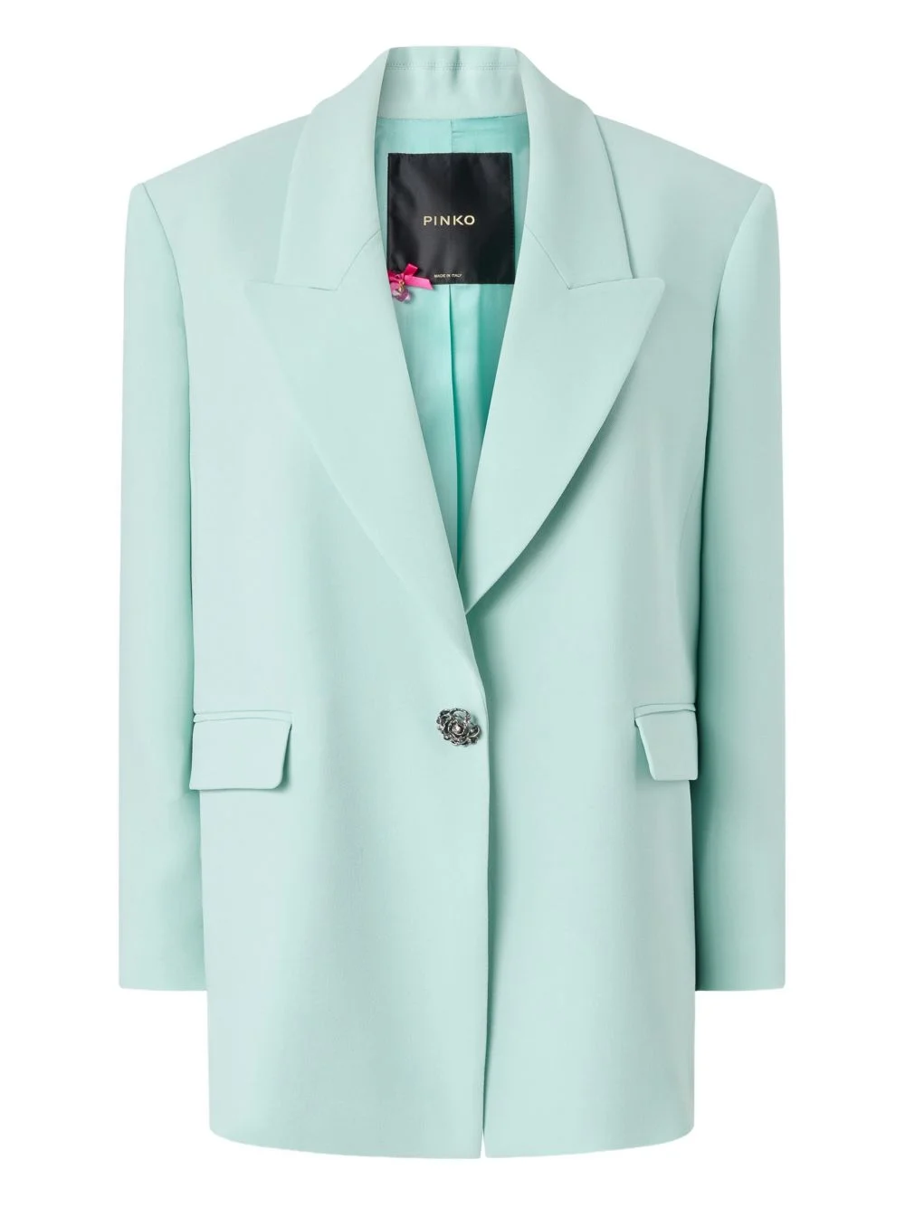 single-bresated blazer Highlights - Mint - Peak lapels - Flap pockets - Buttoned cuffs - Single-breasted - Button fastening Made in Italy Composition Viscose 98%, Elastane 2% Washing instructions Do Not Wash/Do Not Dry Clean