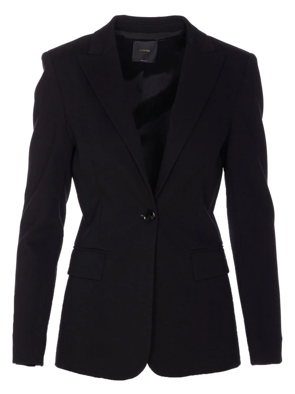 single-button V-neck jacket Highlights - Black - V-neck - Button closure - Flap pocket - Long sleeves Made in Italy Composition Viscose 67%, Nylon 28%, Spandex/Elastane 5% Washing instructions Read Manufacturer Guidelines