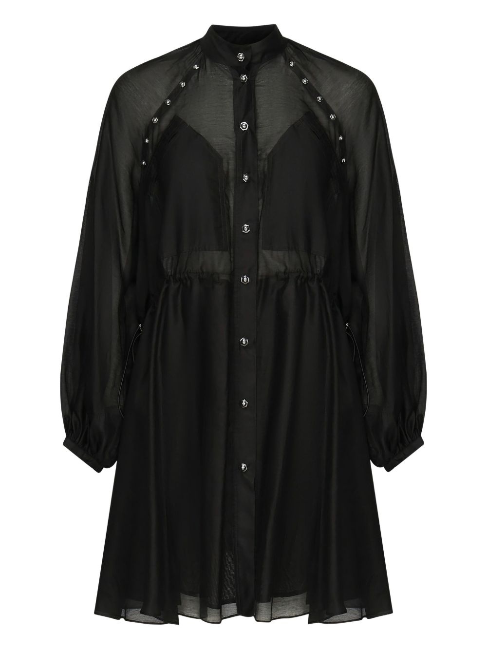 skull-embellished mini dress Highlights - Black - Mandarin collar - Long sleeves - Skull embellishments - Cinched waist Imported Composition Cotton 70%, Silk 30% Washing instructions Hand Wash