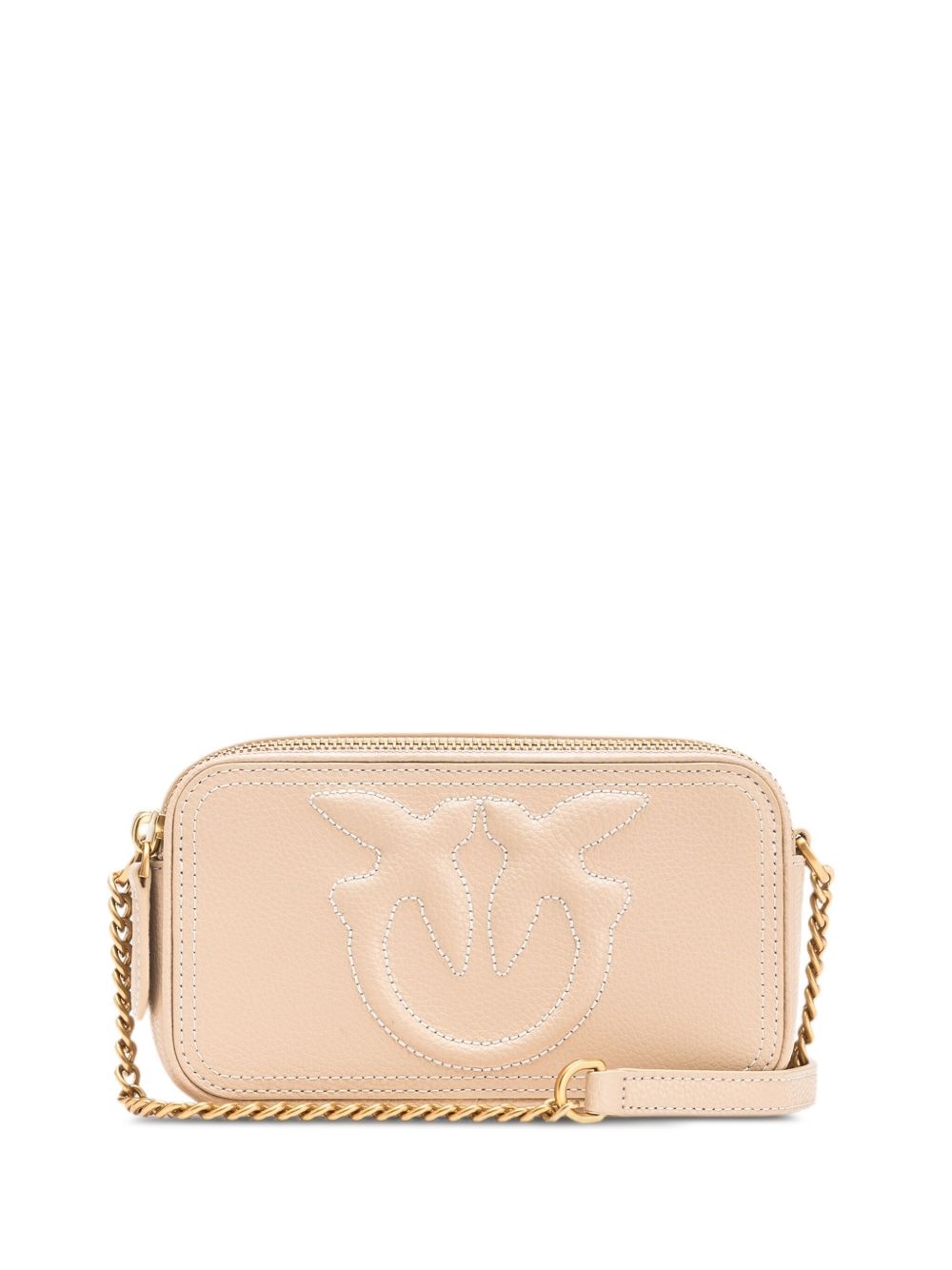 small logo-embossed cross body bag Highlights - Beige - Top zip fastening - Leather and chain-link shoulder strap - Internal card slots Imported Composition Outer: Calf Leather 100% Lining: Polyester 100% SIZE & FIT Measurement DEPTH 2.36 in(6 cm) HEIGHT 3.93 in(10 cm) WIDTH 7.08 in(18 cm)
