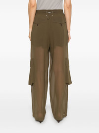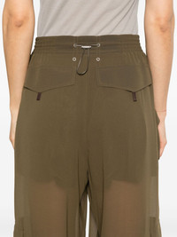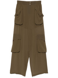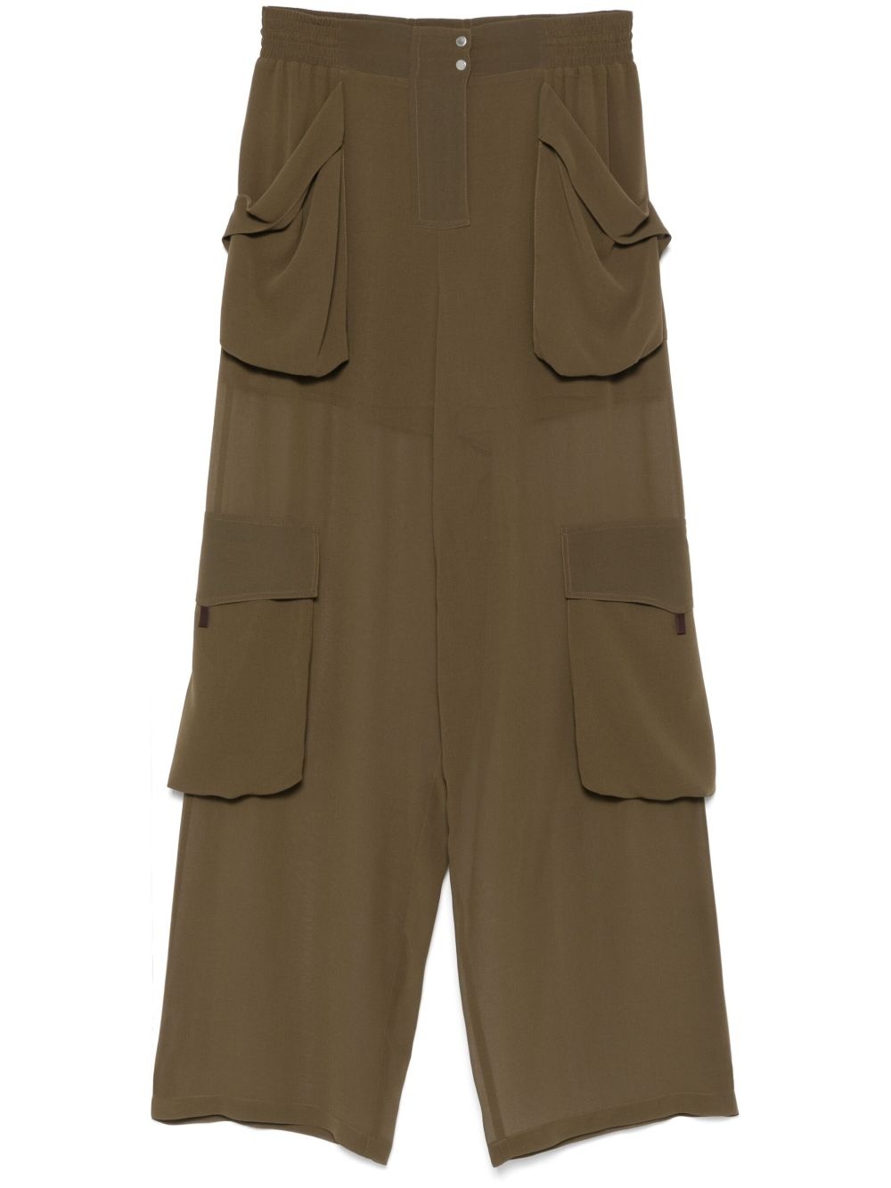 Sottocasa trousers Highlights - Olive green - Elasticated waistband - Front press-stud and zip fastening - Two side patch pockets - Two side cargo pockets Made in Italy Composition Polyester 100% SIZE & FIT Model measurements Height 5 ft 11 in(1.8 m) Bust/Chest 33.07 in(84 cm) Hips 37.4 in(95 cm) Waist 25.19 in(64 cm) FittingInformation Designed with a wide-leg cut, these trousers allow for a close fit at the waist and offer a loose and roomy fit over the leg Adjust this piece’s waistband to your preference using the drawstring Made from a midweight non-stretch fabric