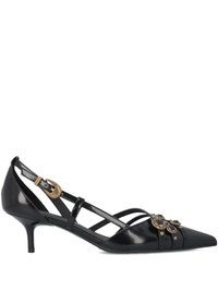strap-detail pumps Highlights - Black - Gold-tone hardware - Strap detailing - Pointed toe - Kitten heel - Buckle fastening Imported Composition Outer: Calf Leather 100% Lining: Calf Leather 100% Sole: Calf Leather 100%