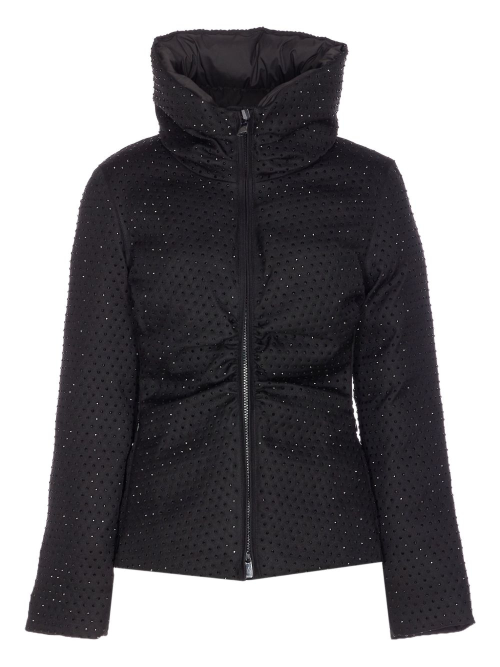strass-embellished high-neck jacket Highlights - Black - High neck - All-over strass embellishment - Zip fastening - Long sleeves - Zip pockets Imported Composition Outer: Polyester 100%, glass 100% Lining: Polyester 100% Washing instructions Read Manufacturer Guidelines