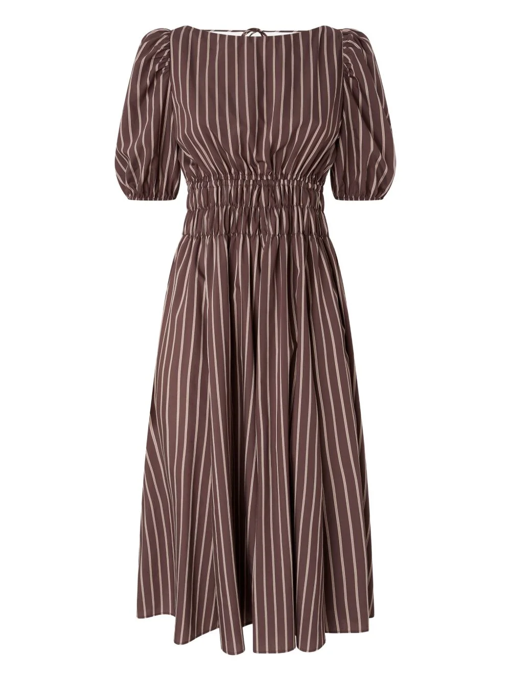 striped-pattern puff-sleeve dress Highlights - Brown - Striped pattern - Puff sleeves - Tie fastening - Open back - Elasticated waist Made in Italy Composition Viscose 87%, Nylon 13% Washing instructions Read Manufacturer Guidelines