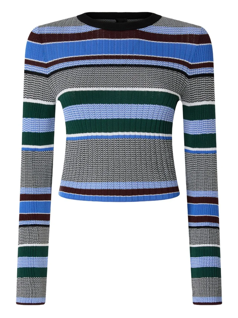 striped ribbed top Highlights - Blue - Striped - Ribbed knit - Round neck - Long sleeves Imported Composition Viscose 80%, Nylon 20% Washing instructions Hand Wash