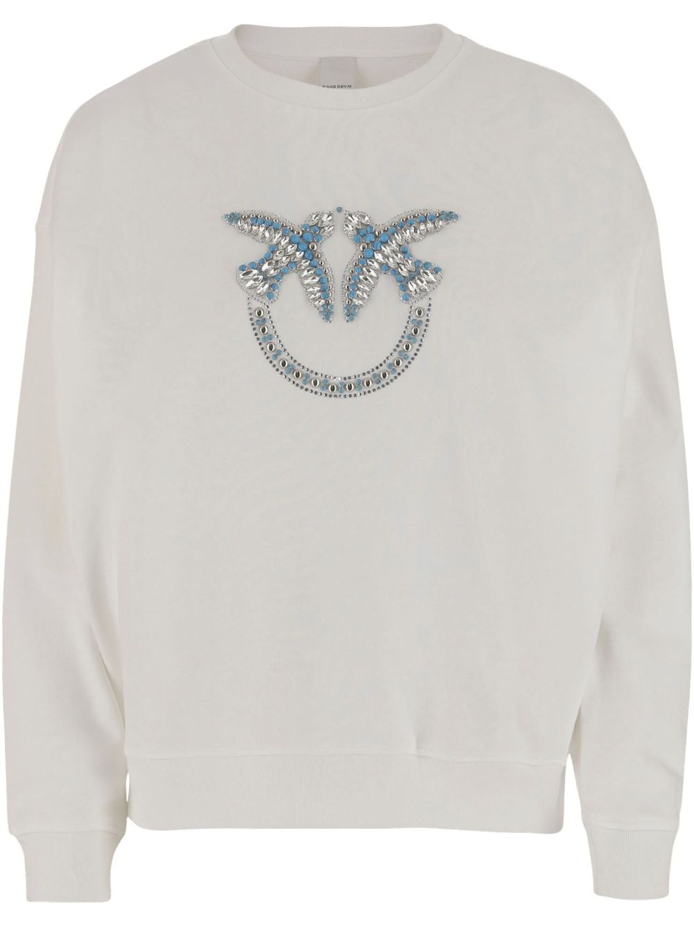 stud-embellished sweatshirt Highlights - White - Signature love birds buckle - Stud embellishment - Crew neck - Long sleeves Imported Composition Cotton 100%, Acrylic 100%, Zinc 100%, glass 100% Washing instructions Hand Wash