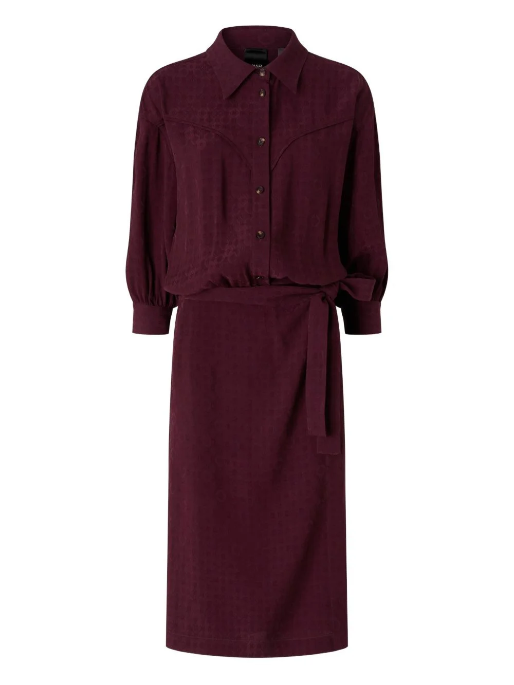 tie-waist shirt midi dress Highlights - Bordeaux - Front button fastening - Tied waist - Patterned jacquard Imported Composition Viscose 100% Washing instructions Hand Wash
