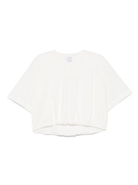 Torrone T-shirt Highlights - White - Crew neck - Short sleeves - Cropped - Embroidered logo to the front Imported Composition Cotton 100% SIZE & FIT Model measurements Height 5 ft 10 in(1.77 m) Bust/Chest 34.25 in(87 cm) Hips 37.4 in(95 cm) Waist 29.13 in(74 cm) FittingInformation Designed to be unstructured, offering a loose fit throughout Cropped in length Made from a midweight non-stretch fabric, this piece offers minimal elasticity when worn