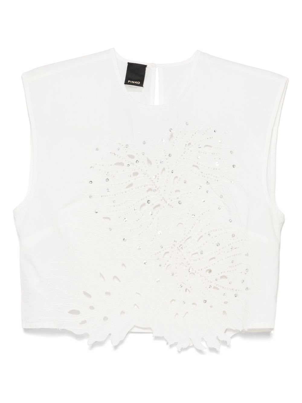 CROP TOP WITH OPENWORK EMBROIDERY AND CRYSTALS