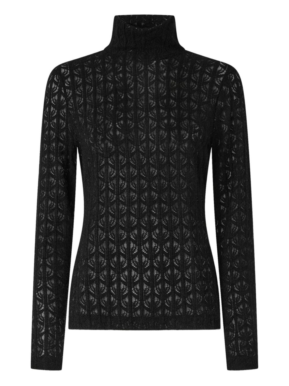turtleneck top Highlights - Black - Openwork design - Turtleneck - Long sleeves - Ribbed hem - Ribbed cuffs Imported Composition Polyamide 90%, Elastane 10% Washing instructions Hand Wash