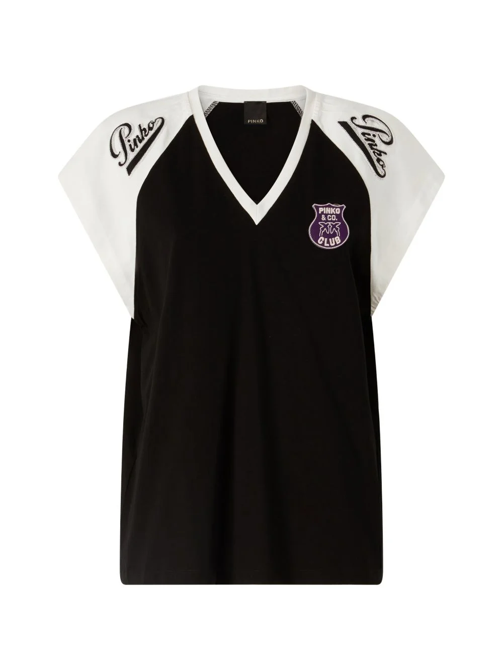 T-SHIRT WITH V-NECK AND BRANDED PATCHES
