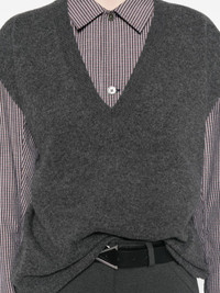 V-neck fine-knit gilet Highlights - Dark grey - Wool-cashmere blend - Fine knit - Brushed finish - Ribbed v-neck - Sleeveless - Ribbed hem Made in Italy Composition Wool 85%, Cashmere 15% SIZE & FIT Model measurements Height 5 ft 11 in(1.8 m) Bust/Chest 32.67 in(83 cm) Hips 36.22 in(92 cm) Waist 25.19 in(64 cm) FittingInformation Designed for a relaxed fit, this piece allows for comfort and movement when worn Made with a midweight knit, this piece offers some stretch This piece fits true to size – take your usual size