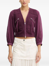 V-neck puff-sleeve top Highlights - Purple - Two-way zip fastening - Puff sleeves - Cropped length - Zip pockets Imported Composition Cotton 100%