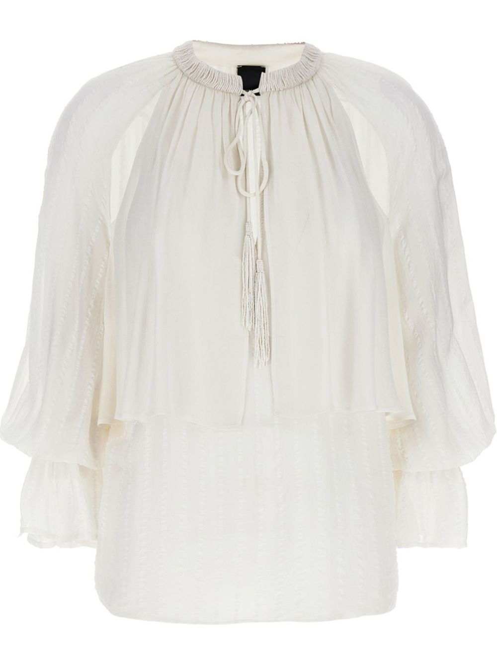 Valium blouse Highlights - White - Front tie fastening - Elasticated cuffs - Cut-out detailing - Long puff sleeves Imported Composition Viscose 100% Washing instructions Read Manufacturer Guidelines