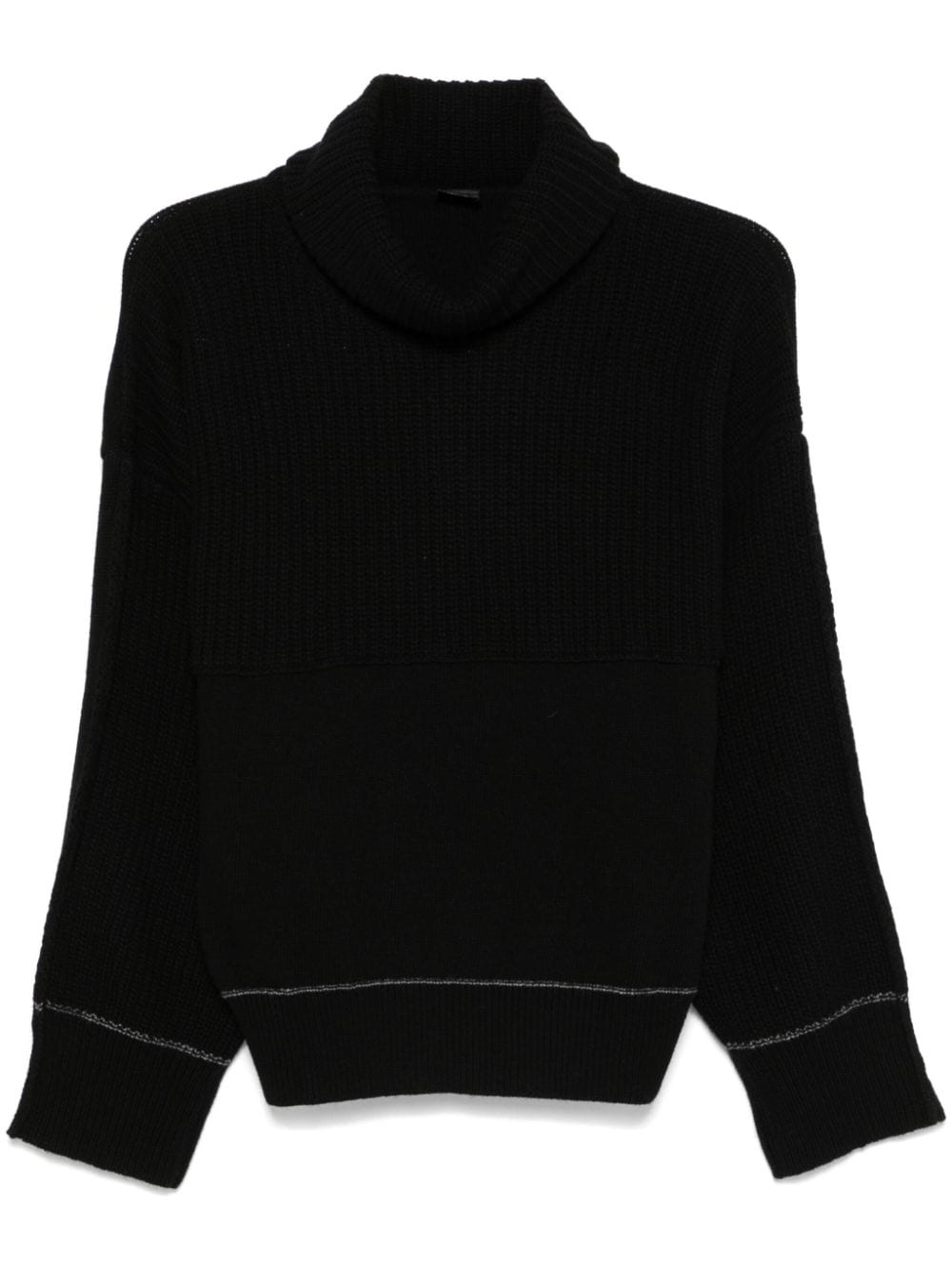 Vigne sweater Highlights - Black - Chunky ribbed knit - Fisherman's knit - Panelled design - Contrasting trim - Roll neck - Drop shoulder - Long sleeves - Ribbed cuffs and hem - Unlined Made in Italy Composition Wool 40%, Viscose 30%, Nylon 20%, Cashmere 10% SIZE & FIT Model measurements Height 5 ft 11 in(1.8 m) Bust/Chest 33.07 in(84 cm) Hips 37.4 in(95 cm) Waist 25.19 in(64 cm) FittingInformation Designed for a relaxed fit, this piece allows for comfort and movement when worn Made with a midweight knit, this piece offers some stretch
