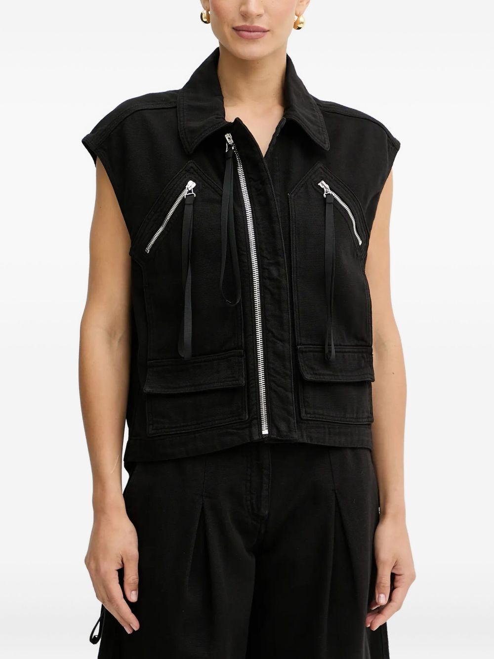 zip-fastening pocket gilet Highlights - Black - Sleeveless design - Zip fastening - Flap pockets - Drawstring detail - Collared neckline Imported Composition Lining: Polyester 100% Outer: Cotton 100% Washing instructions Read Manufacturer Guidelines