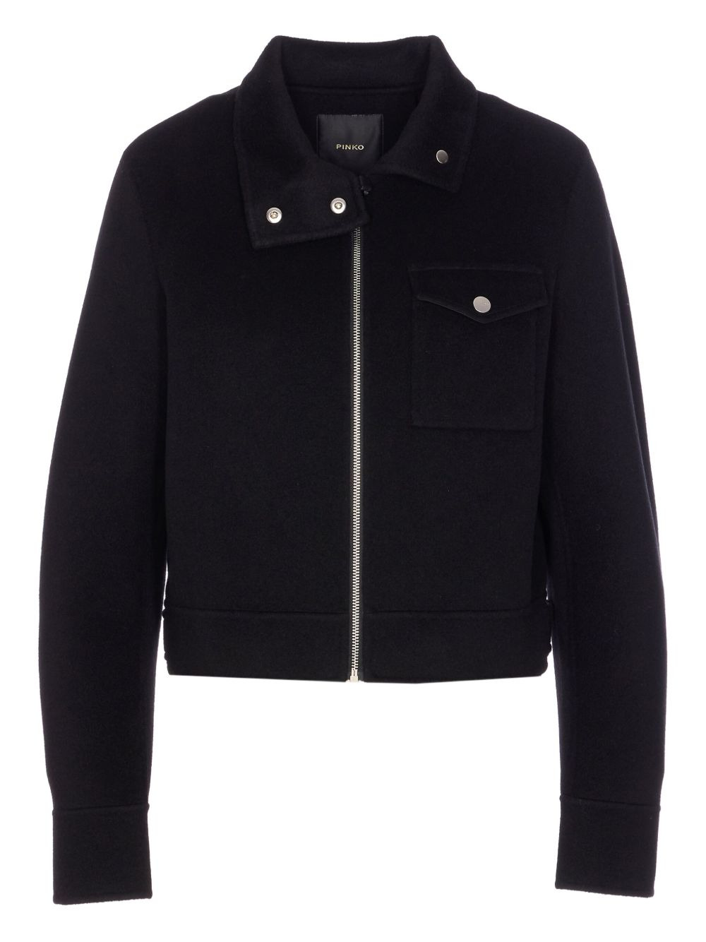 zip-front cropped jacket Highlights - Black - Zip front fastening - Flap pocket - Snap-fit cuffs Imported Composition Wool 82%, Nylon 18% Washing instructions Read Manufacturer Guidelines