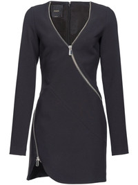 zipped crepe V-neck minidress Highlights - Black - Stretch-design - Zip detail - V-neck - Rear zip fastening - Long sleeves - Short side slit - Straight hem Made in Italy Composition Polyester 94%, Elastane 6%