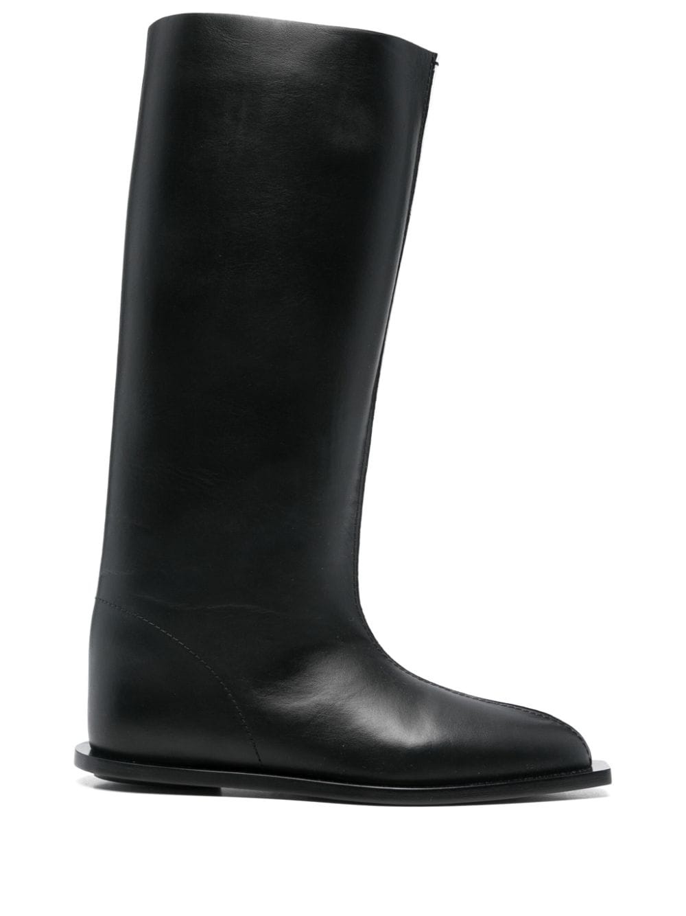leather boots Highlights - Black - Calf leather - Smooth grain - Slip-on style - Contrasting trim - Pointed toe - Branded leather insole - Leather and rubber sole - Mid-calf length - This piece comes complete with a protective dust bag. Made in Italy Composition Sole: Rubber 100%, Calf Leather 100% Outer: Calf Leather 100% Lining: Calf Leather 100% SIZE & FIT Measurement CIRCUMFERENCE 14.56 in(37 cm) HEEL 0.59 in(1.5 cm) HEIGHT 14.76 in(37.5 cm) Sole height 0.39 in(1 cm)