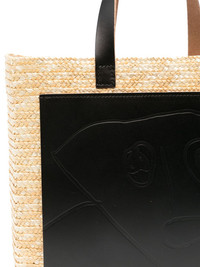 leather-panelled straw tote bag