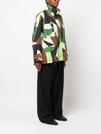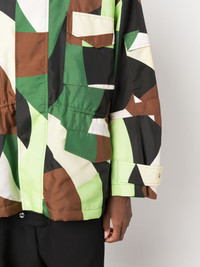 Messy Masses geometric-pattern jacket Highlights - Grass green/multicolour - Geometric-pattern print - Ripstop texture - Funnel neck - Concealed front fastening - Two chest flap pockets - Internal drawstring fastening waist - Drop shoulder - Long sleeves - Sleeve flap pocket - Press-stud fastening cuffs - Rear curved hem Made in Italy Composition Outer: Polyamide 100%, Polyester 56%, Cotton 22%, Cupro 22% Lining: Polyester 100% SIZE & FIT Model measurements Height 5 ft 10 in(1.77 m) Bust/Chest 34.64 in(88 cm) Hips 35.43 in(90 cm) Waist 24.8 in(63 cm) FittingInformation Designed for an oversized fit, offering additional room throughout The adjustable drawstring means that you can adjust this piece’s fit to suit your comfort and preference Made from a quilted non-stretch fabric, giving it no natural elasticity This piece fits true to size – take your usual size Washing instructions Dry Clean Only