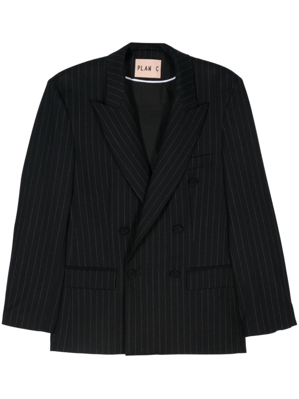 pinstriped blazer Highlights - Dark green - Wool blend - Pinstripe pattern - Double-breasted button fastening - Peak lapels - Long sleeves - Buttoned cuffs - Chest welt pocket - Two front flap pockets - Full lining - Straight hem Made in Italy Composition Outer: Wool 95%, Elastane 5% Lining: Cotton 61%, Cupro 39%