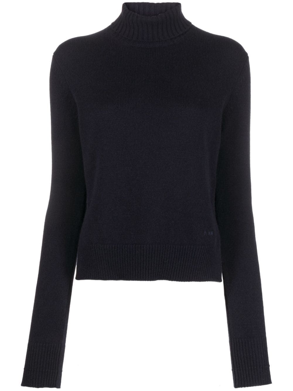 roll-neck cashmere jumper Highlights - Navy blue - Cashmere - Knitted construction - Embroidered logo to the side - Roll neck - Long sleeves - Split cuffs - Ribbed cuffs and hem - Short side slits - Straight hem Made in Italy Composition Cashmere 100% SIZE & FIT Model measurements Height 5 ft 9 in(1.76 m) Bust/Chest 33.07 in(84 cm) Hips 34.64 in(88 cm) Waist 25.59 in(65 cm) FittingInformation Designed for a relaxed fit, this piece allows for comfort and movement when worn Made with a midweight knit, this piece offers some stretch This piece fits true to size – take your usual size Washing instructions Hand Wash