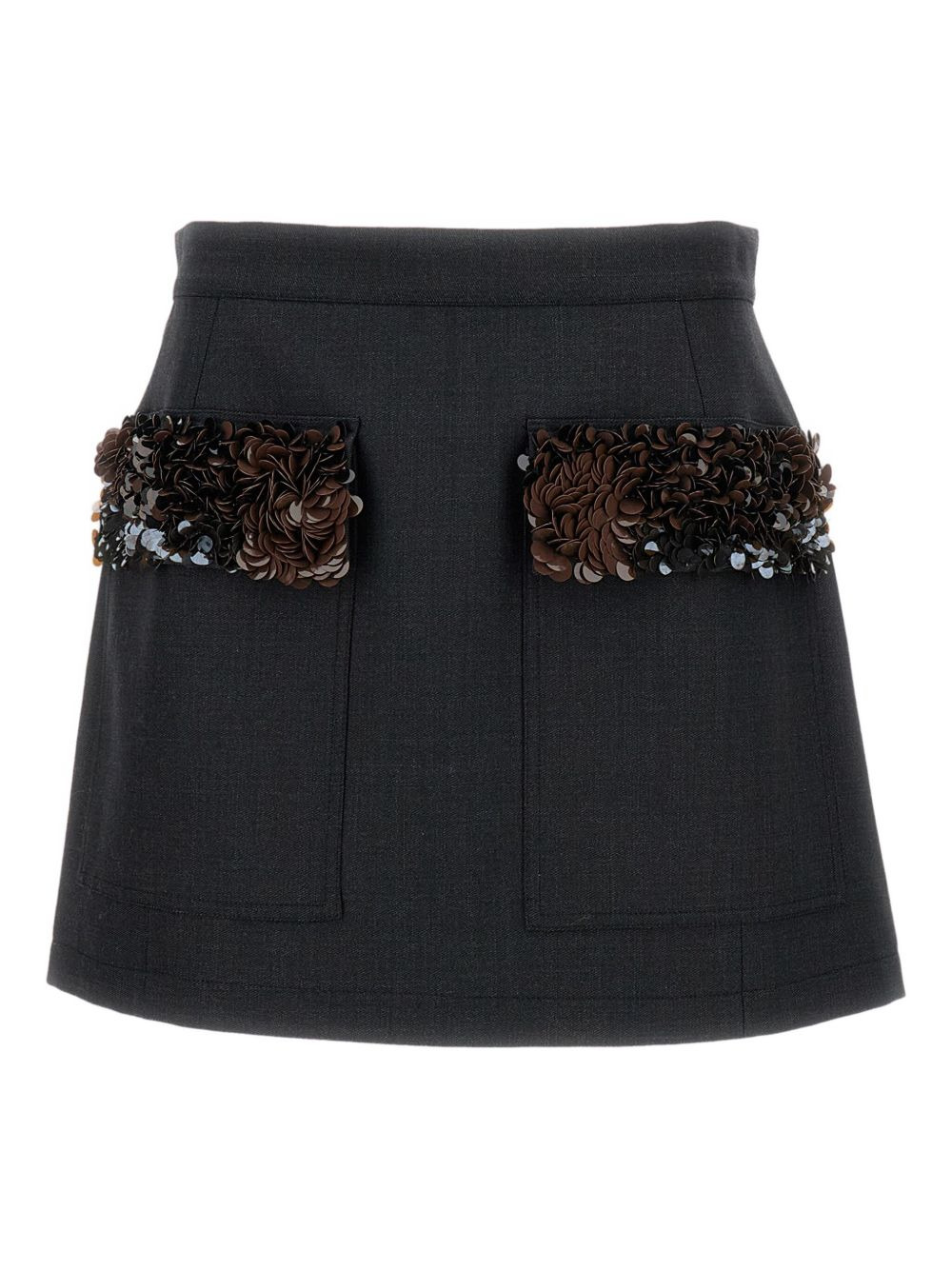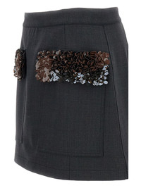 sequin-pocket wool mini skirt Highlights - Black - Wool blend - Sequin embellishment - Front patch pockets - Straight hem - Concealed zip fastening Made in Italy Composition Virgin Wool 97%, Elastane 3% Washing instructions Read Manufacturer Guidelines