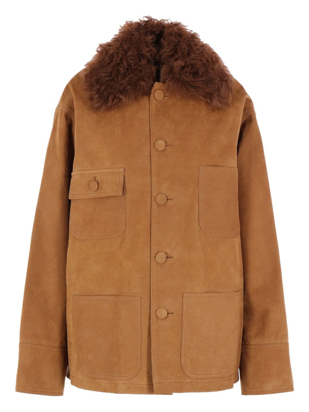 shearling-collar pocket jacket Highlights Made in Italy Composition Outer: Calf Leather 90%, Lamb Shearling 10% Lining: Cupro 34%, Polyester 33%, Polypropylene 33%