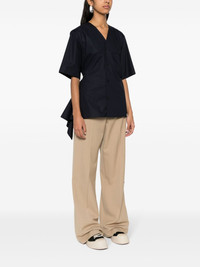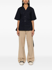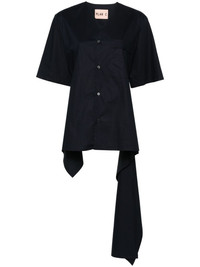 short-sleeve cotton shirt Highlights - Midnight blue - Cotton - Poplin texture - V-neck - Chest patch pocket - Short sleeves - Tied waist - Straight hem - Front button fastening Made in Italy Composition Cotton 100% SIZE & FIT Model measurements Height 5 ft 9 in(1.76 m) Bust/Chest 31.88 in(81 cm) Hips 35.43 in(90 cm) Waist 22.44 in(57 cm) FittingInformation Designed to be unstructured, offering a loose fit throughout The adjustable tie waist gives a more adaptable and personalised fit Made from a midweight non-stretch fabric This piece fits true to size – take your usual size Washing instructions Dry Clean Only