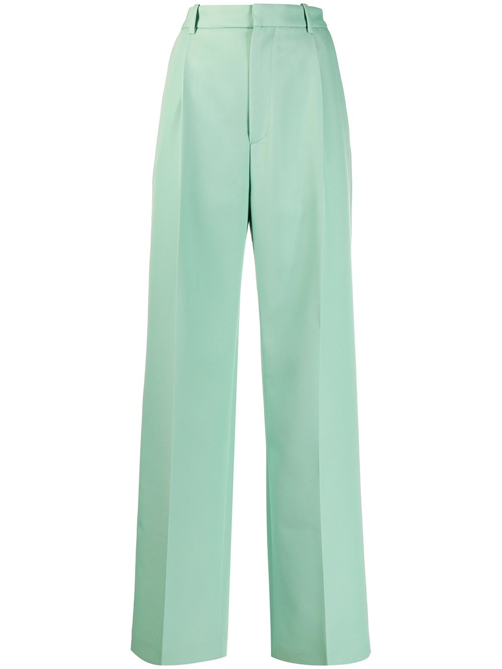 tailored wide-leg trousers Green cotton tailored wide-leg trousers from plan c featuring a high waist, belt loops, a concealed front fastening, side slit pockets, rear pockets, creases and a long length. Made in Italy Composition Lining: Cotton 100% Outer: Polyester 100% SIZE & FIT Model measurements Height 5 ft 11 in(1.8 m) Bust/Chest 33.07 in(84 cm) Hips 37.4 in(95 cm) Waist 25.19 in(64 cm) FittingInformation This piece fits true to size. We recommend you get your regular size Designed to be fitted at the waist, loose over the leg Made with a mid-weight non-stretch fabric Washing instructions Hand Wash