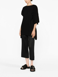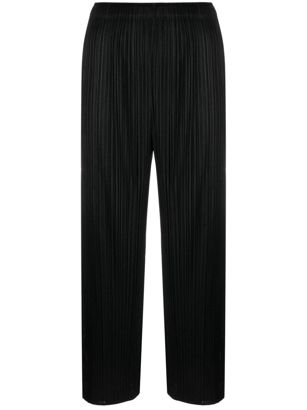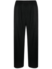 cropped pleated trousers Pleats Please Issey Miyake designs are instantly recognisable thanks to their uniquely pleated finish. This material is created from a single thread, with pleats being added after the garment is sewn into shape. On this pair of trousers, a cropped silhouette and monochromatic hue create a contemporary yet timeless design. Highlights - Black - Cropped leg - Fully pleated Imported Composition Polyester 100% SIZE & FIT Model measurements Height 5 ft 10 in(1.78 m) Bust/Chest 30.7 in(78 cm) Hips 34.64 in(88 cm) Waist 23.22 in(59 cm) FittingInformation Designed for a straight-leg fit, these trousers allow for a close fit at the waist and an unrestricted, comfortable fit over the leg The elasticated waist allows for a comfortable fit The pleated construction on this piece allows for additional movement and flexibility in the fit This piece's size conversion is based on body measurements; for help with this item's sizing, refer to our Size & Fit Guide Washing instructions Machine Wash