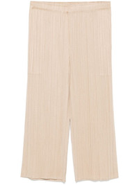 MC August trousers Highlights - Sand beige - Satin finish - Slip-on style - Elasticated waistband - Plisse effect - Two side slit pockets - Straight leg - Cropped Imported Composition Polyester 100% SIZE & FIT FittingInformation Designed for a straight-leg fit, these trousers allow for a close fit at the waist and an unrestricted, comfortable fit over the leg The elasticated waist allows for a comfortable fit The pleated construction on this piece allows for additional movement and flexibility in the fit This piece's size conversion is based on body measurements; for help with this item's sizing, refer to our Size & Fit Guide