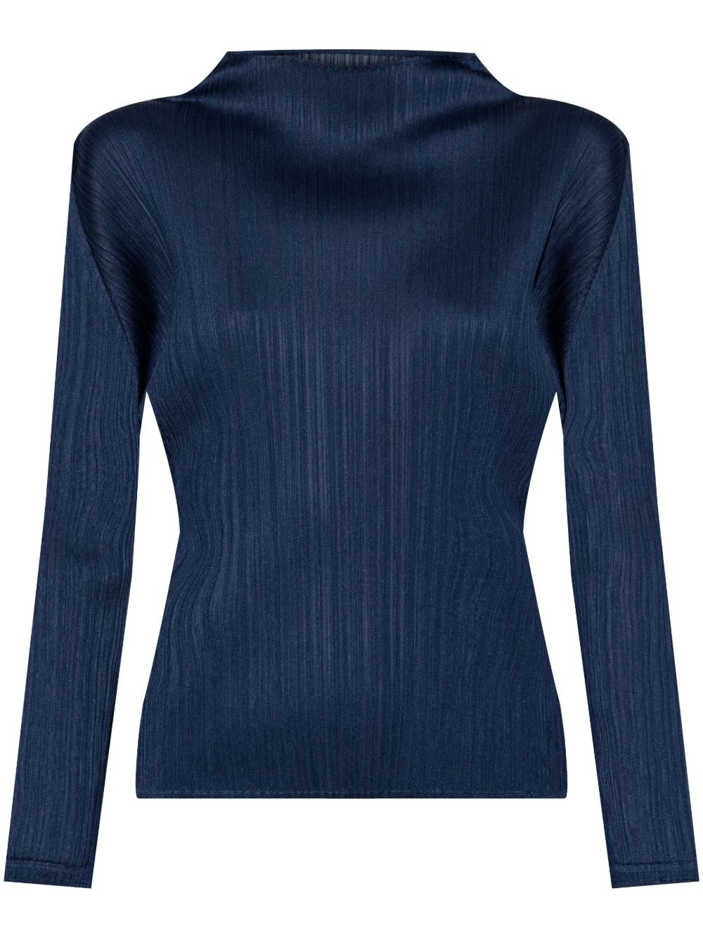 Monthly Colors: February blouse Highlights - Navy blue - Plisse effect - Draped detailing - Long sleeves - Straight hem Imported Composition Polyester 100% SIZE & FIT FittingInformation Designed for a slim fit that sits just away from the body offering a close yet comfortable fit The pleated construction on this piece allows for additional movement and flexibility in the fit This piece's size conversion is based on body measurements; for help with this item's sizing, refer to our Size & Fit Guide Washing instructions Machine Wash
