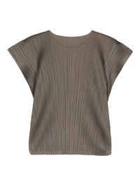 Monthly Colors: March pleated top Highlights - Khaki - Fully pleated - Round neck - Cap sleeves - Straight hem Imported Composition Polyester 100% SIZE & FIT FittingInformation Designed for a slim fit that sits just away from the body offering a close yet comfortable fit The pleated construction on this piece allows for additional movement and flexibility in the fit This piece's size conversion is based on body measurements; for help with this item's sizing, refer to our Size & Fit Guide Washing instructions Machine Wash