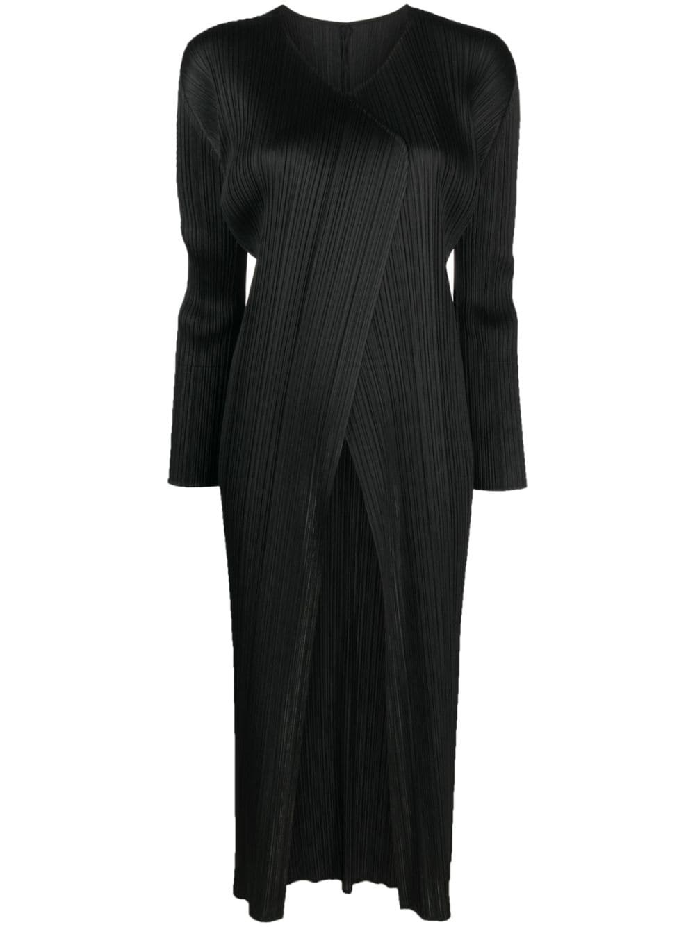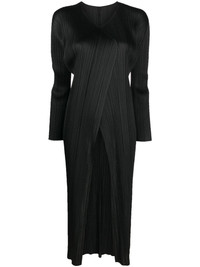 Monthly Colors plisse single-breasted coat The streamlined design of this black coat is elevated thanks to its plisse construction, a Pleats Please Issey Miyake signature, creating curving lines and textural interest. Highlights - Black - Plisse effect - V-neck - Drop shoulder - Long sleeves - Straight hem - Below-knee length - No fastening Imported Composition Polyester 100% SIZE & FIT Model measurements Height 5 ft 11 in(1.8 m) Bust/Chest 33.07 in(84 cm) Hips 37.4 in(95 cm) Waist 25.19 in(64 cm) Measurement SLEEVE LENGTH 20.86 in(53 cm) Shoulder Width 11.02 in(28 cm) LENGTH 39.76 in(101 cm) WAIST 29.13 in(74 cm) BUST 28.34 in(72 cm) FittingInformation Designed for a slim fit that sits just away from the body offering a close yet comfortable fit The pleated construction on this piece allows for additional movement and flexibility in the fit This piece's size conversion is based on body measurements; for help with this item's sizing, refer to our Size & Fit Guide